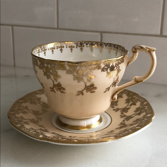 Beautiful Antique Vintage Tea Cup And Saucer 3 Legged Gold Trim.